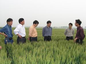 省小麥高產(chǎn)攻關(guān)小組技術(shù)組專家在潘村湖農(nóng)場(chǎng)考察(圖)