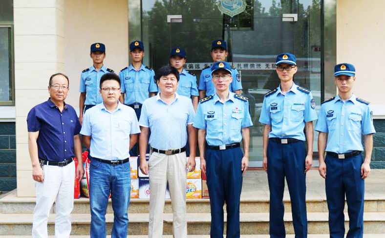 真情送給子弟兵,軍民魚水情更濃。四場領導與空軍官兵共慶建軍91周年,為人民子弟兵送去大米、食用油、礦泉水等生活用品和防暑降溫品,在炎炎夏日送上絲絲清涼和節日的問候、真摯的祝福。(陳峰)