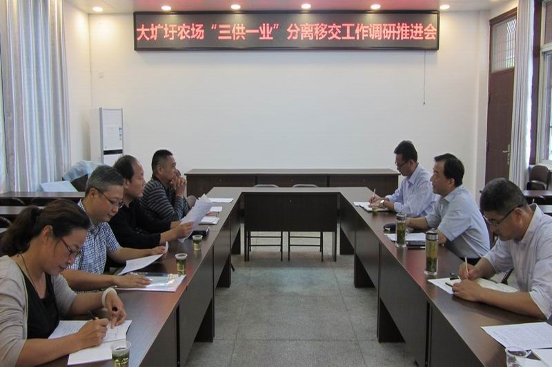 調(diào)研推進(jìn)會上,楊朝幸向吳漢金一行匯報了農(nóng)場“三供一業(yè)”基本情況、分離移交存在的主要問題及下一步工作設(shè)想。賓主雙方就此展開了深入交流探討。