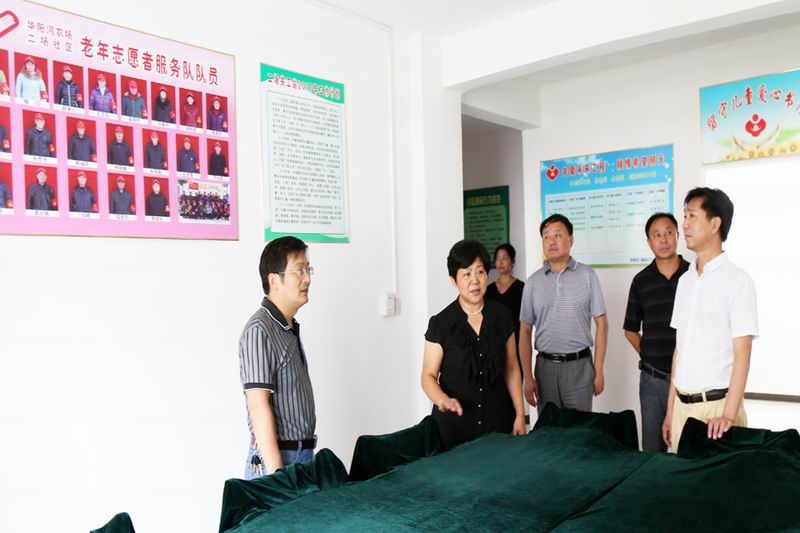 徐慧一行實地查看了宿松縣文明小區”——華陽河二場金?;▓@小區的災后恢復建設情況,參觀了農墾好人榜、老年志愿者活動室、道德講堂、兒童愛心書屋等場所,對農場好人榜的社會效應和宣傳效果給予肯定。她表示,爭取把兒童愛心書屋納入縣資助范圍,同時加強墾地在宣傳業務上的聯系,互通信息,共同提高。(李龍)