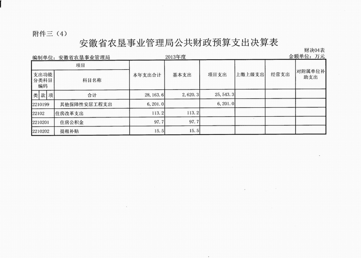 4. 安徽省農(nóng)墾事業(yè)管理局公共財(cái)政預(yù)算財(cái)政撥款支出決算表