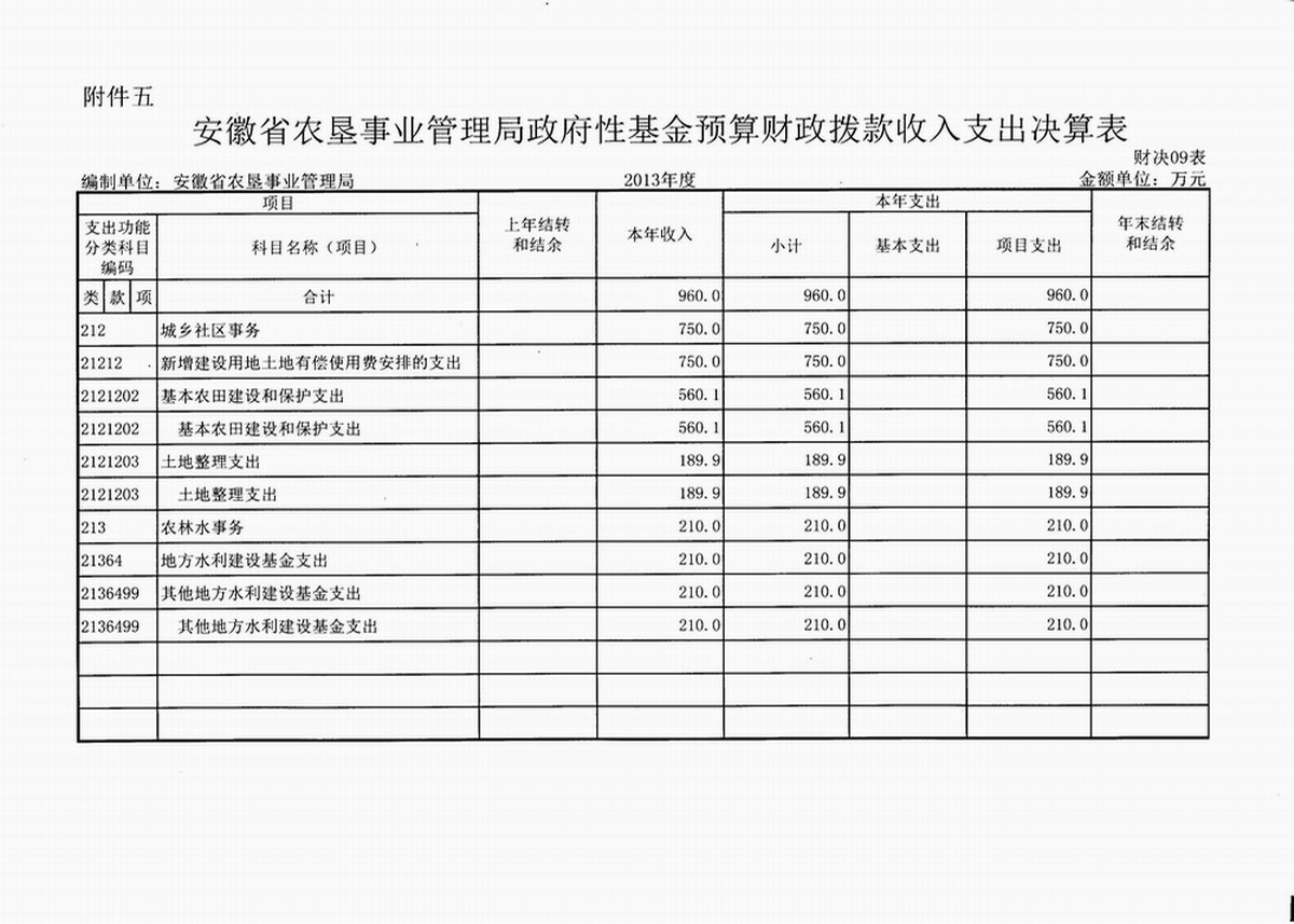 5. 安徽省農(nóng)墾事業(yè)管理局政府性基金預(yù)算收支決算表