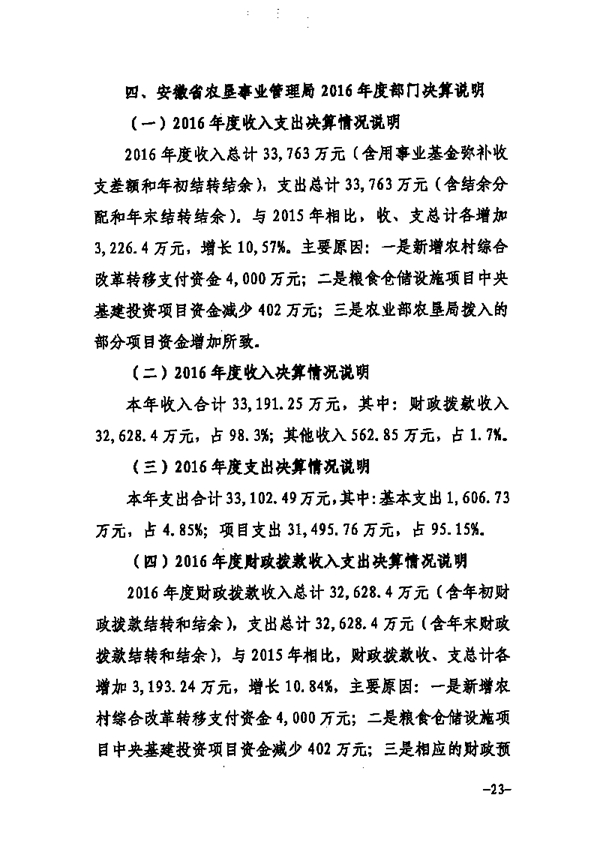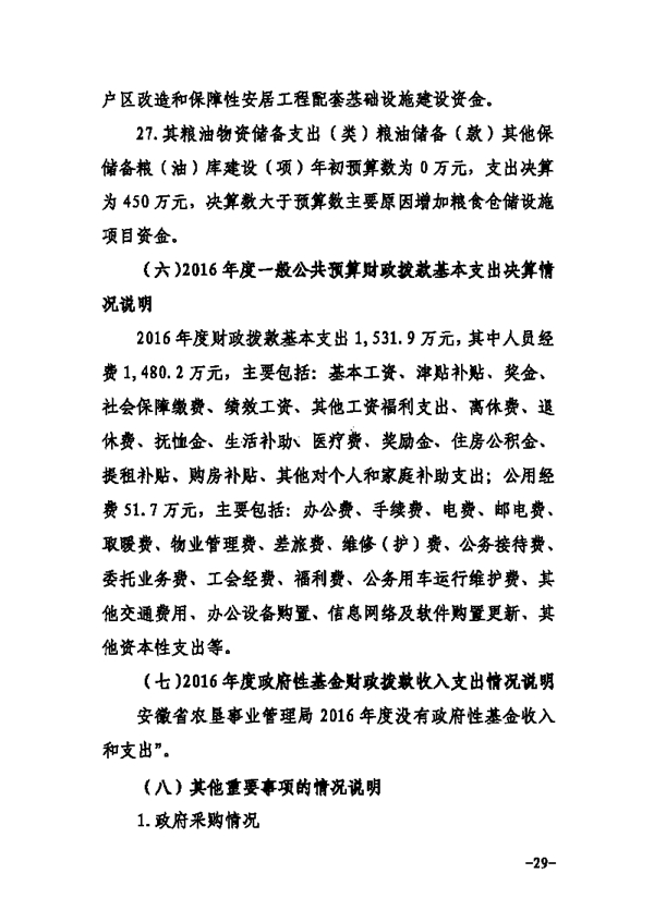 安徽省農(nóng)墾事業(yè)管理局2016年部門決算情況