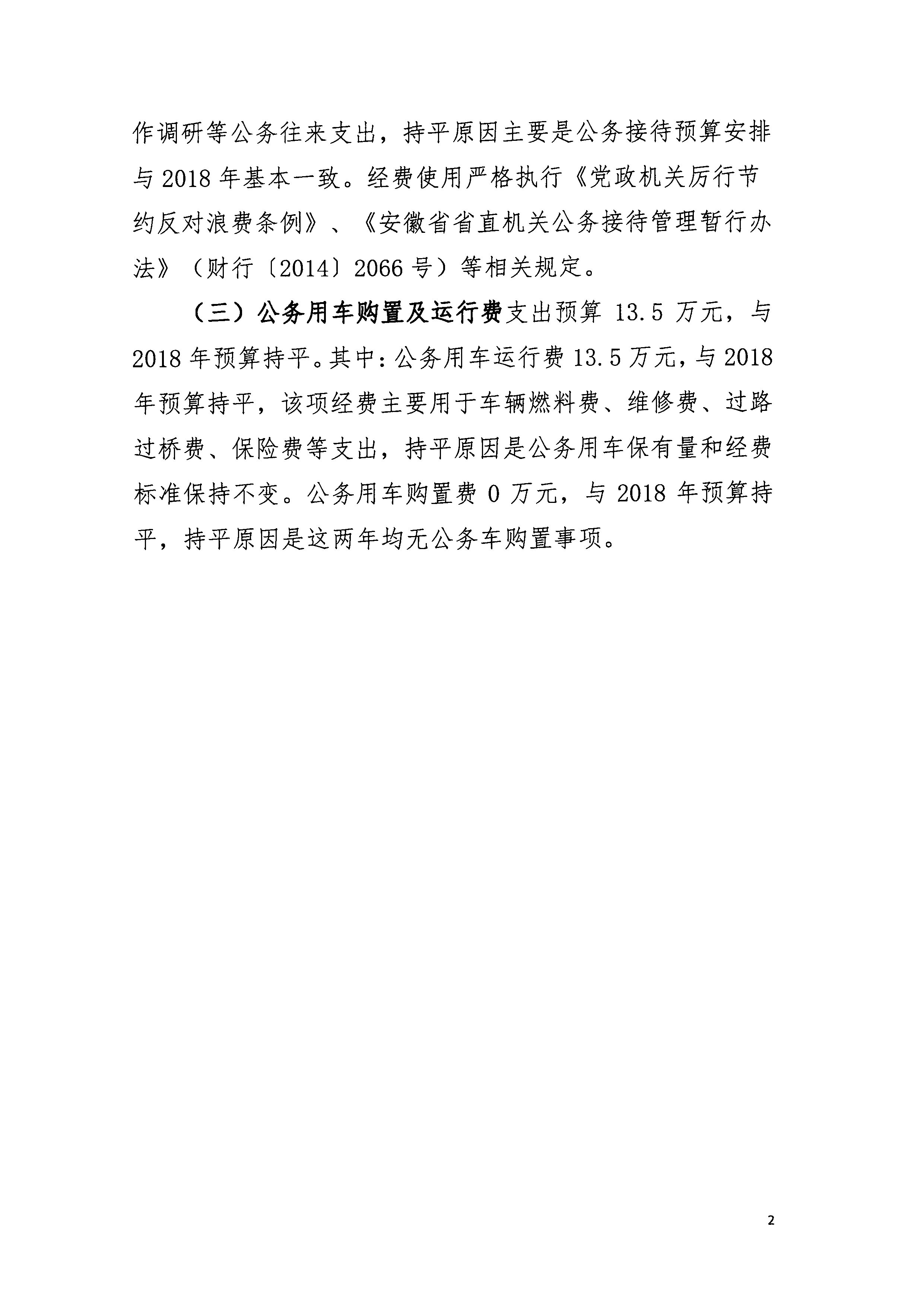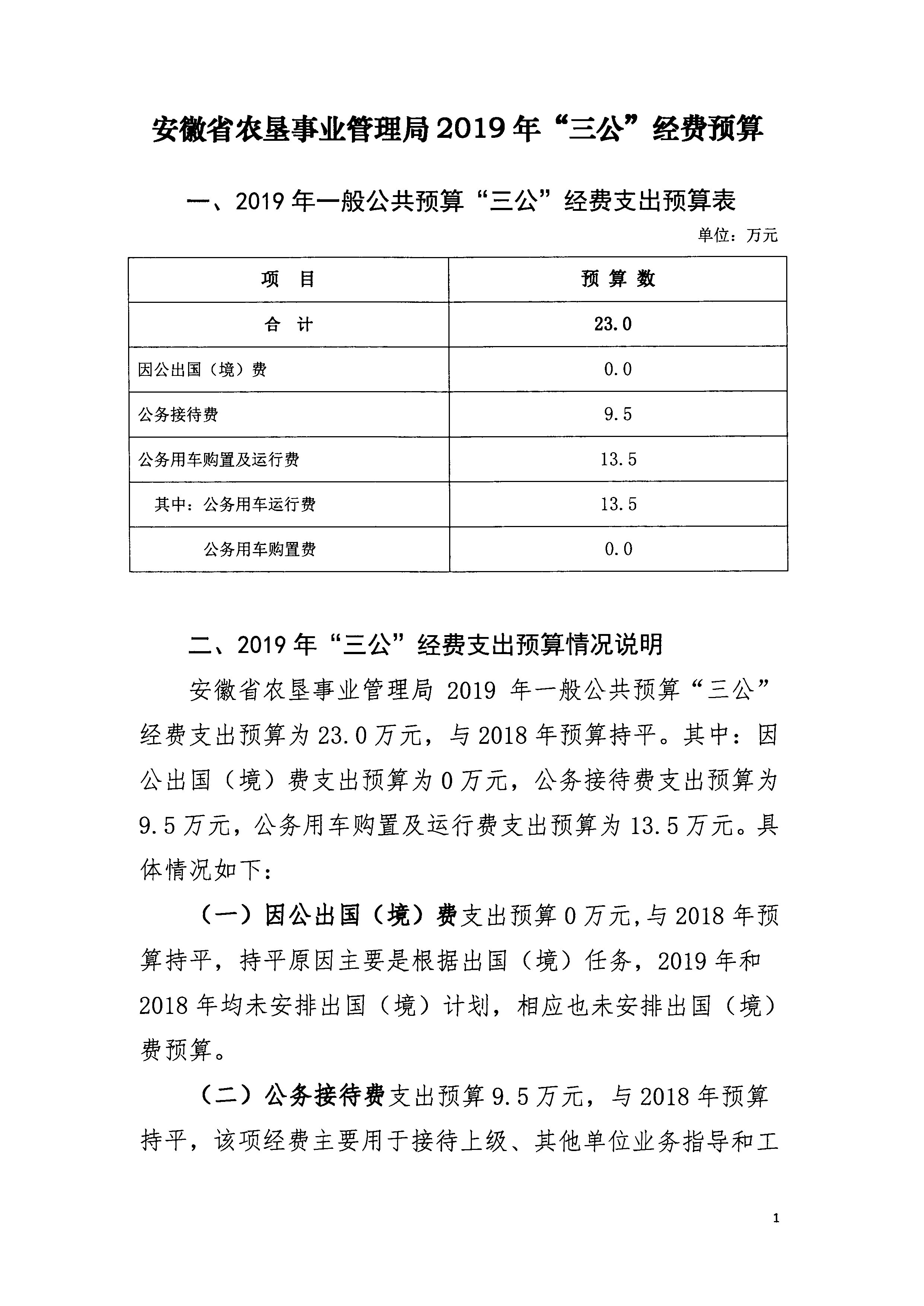 安徽省農(nóng)墾事業(yè)管理局2019年“三公”經(jīng)費預算