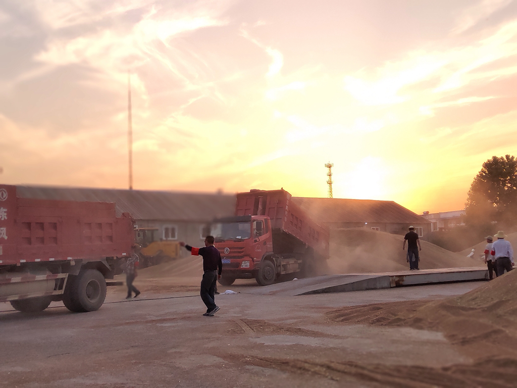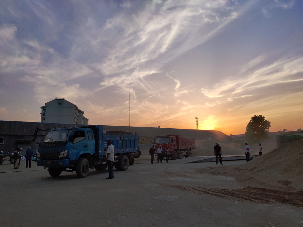 午收的主打色是金色,成群結(jié)隊的大型收割機從清晨工作到夕陽西下,收割的小麥直接運往農(nóng)場各個農(nóng)服收購站。運糧車從上稱、檢測、卸糧到出站不過十多分鐘的時間,迅速快捷而有序。(華陽河農(nóng)場公司  包丹鳳)
