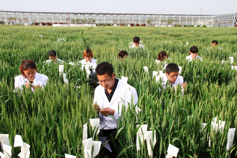 421,安徽農墾龍亢農場現代農業科技園區,科研人員正在做小麥雜交授粉,今年計劃做小麥雜交組合2500多個。該科技園區每年承擔國家級和省級現代農業科研項目30多個,主要培育和展示黃淮海地區小麥、水(旱)稻、大豆、玉米新品種。目前已有7個農作物新品種進入國家、省區試,17個農作物新品種進入國家和省級預試,3個農作物品種獲植物新品種保護權。(安徽日報2015424頭版,李峰 攝)