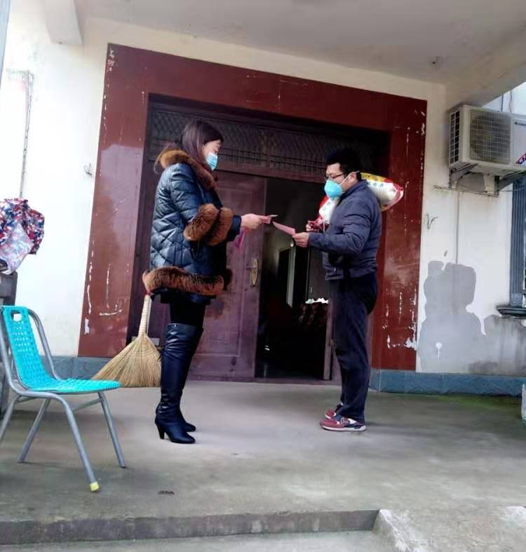 1月29日一大早,剛起床的三益分場職工王建軍就聽到一陣敲門聲,他帶上口罩打開門,就見到分場工作人員扛著一大袋米送過來。王建軍一家人常年在武漢從事裝修工作,一回家就聽說要隔離,所以不敢出門。這不,分場工作人員就買好米等生活用品送上門。還有一些鄰居,經常把自家種的蔬菜摘好放到他家門口。