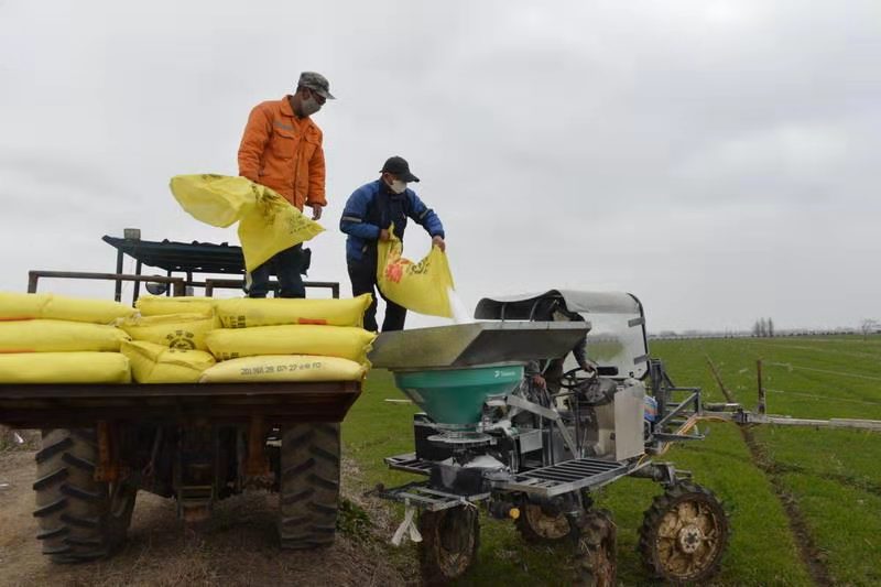 目前,在農場公司的有序安排下,近2萬畝小麥已基本完成施肥任務。(王桂娟)