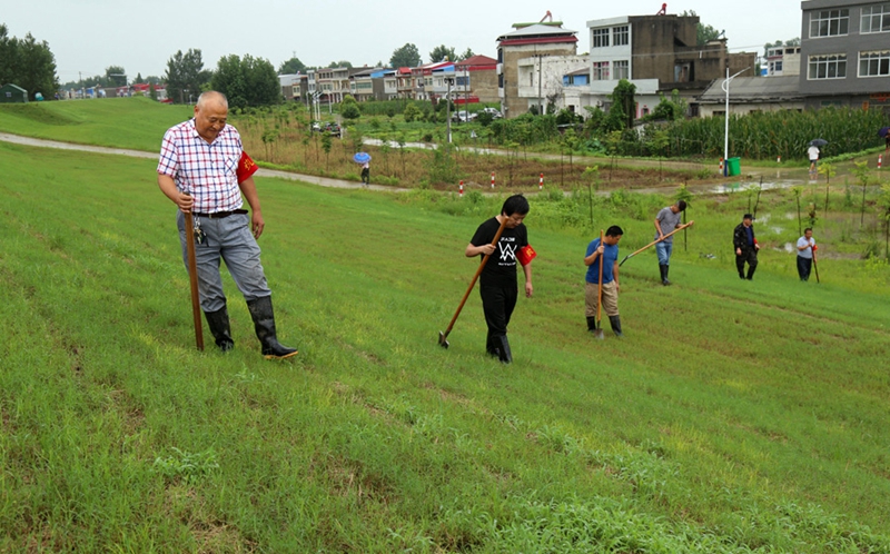 7月10日8時,長江匯口站水位達(dá)21.44米,超警戒水位1.64米,華陽河農(nóng)場按每公里25人標(biāo)準(zhǔn)安排上堤人數(shù)巡堤查險頻率改為每兩小時一次,重點險段巡查至堤腳300米以外;安慶站水位17.47米,皖河農(nóng)場按每公里10人安排防汛人員。兩場共300多人堅守在大堤上。成立臨時支部共15個,71名黨員沖鋒在前,帶領(lǐng)防汛民工全面開展巡堤查險,日夜堅守,枕戈待“汛”。