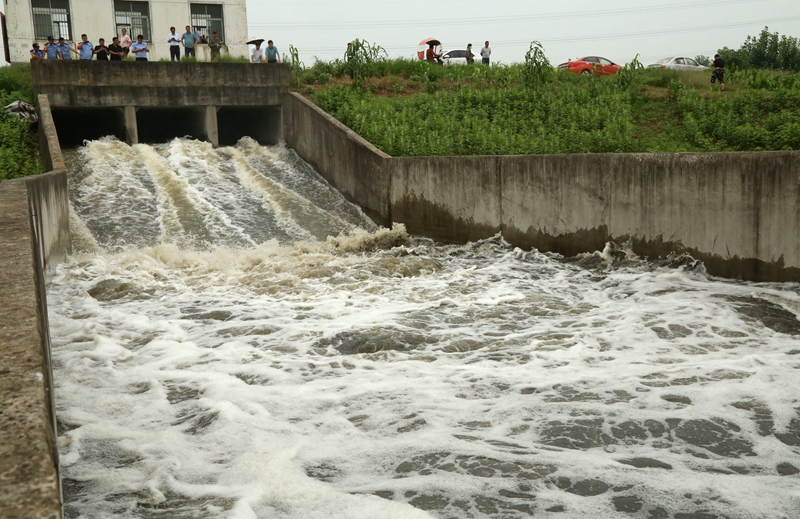 能行嗎?大家提出疑慮:始建于2005年的這座分洪閘,建成15年來從未啟用,閘門是否能安全開啟?對躍進河子堤的沖擊能否承受?大站排澇能力是否滿足?遇到突發事件閘門能否安全關閉?若不啟用分洪閘,以當時每小時5公分的速度漲勢,漫堤現象將更加嚴重,圩堤潰破在所難免,對農場和壽縣將造成重大損失……經過周密會商,專家組科學研判,會議形成一致意見:決定啟用分洪閘,立即向集團公司防指匯報。當日上午11時,集團公司防指果斷下達命令:開閘分洪,并啟動聯合調度運用方案。