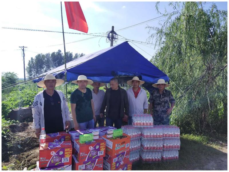 8月1日下午,焦崗湖農場公司領導帶領工會負責人到防汛工作一線,開展“送清涼”慰問活動。潘村湖農場公司為巡堤人員提供充足的飲用水和毛巾、草帽、藿香正氣水、風油精等防暑用品,每天按時將熱騰騰的盒飯送到堤防一線。8月2日上午,又在防汛棚配置了遮陽網、移動式發電機和電風扇,切實保障巡堤人員防暑降溫。