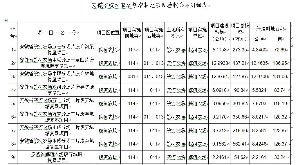 見《安徽省皖河農場2020年新增耕地項目驗收公示明細表》