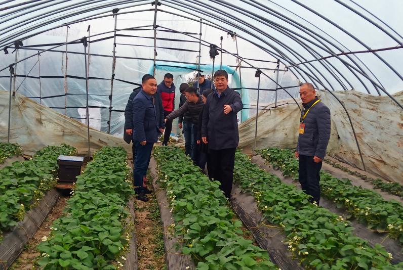 王良貴一行實地走訪了安徽農(nóng)墾扶貧產(chǎn)業(yè)園,詳細了解草莓園生產(chǎn)、管理等情況,隨行專家對冬季大棚草莓溫濕度控制、花果管理、病蟲害防治等方面給予技術(shù)指導(dǎo)。