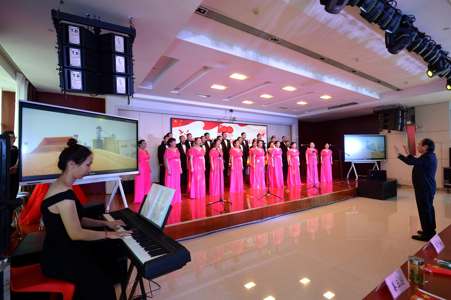 一首高亢的開場合唱歌曲《我愛你,中國》表達了皖墾干部職工對祖國的無比熱愛;《我和我的祖國》這首合唱歌曲謳歌了皖墾人和祖國一刻也不能分割的深厚感情,《最美的歌唱給媽媽》則謳歌了皖墾兒女對黨的無限深情。大合唱《不忘初心》和《我宣誓》則表達了共產(chǎn)黨員不忘初心、繼續(xù)前行的壯志豪情,最后,全場合唱《沒有共產(chǎn)黨就沒有新中國》將全場氣氛推向了高潮。