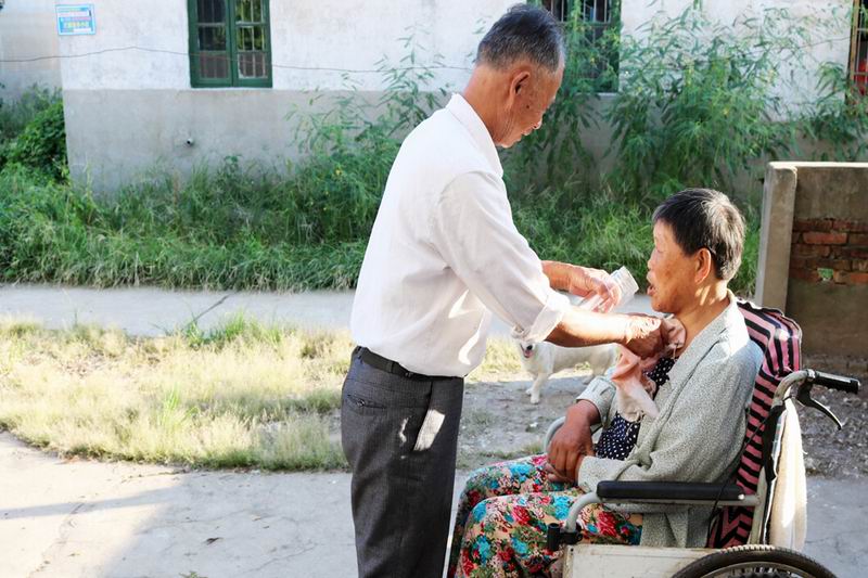 李成龍是華陽河三場華港新村社區居民,5年前,妻子張菊蘭突然中風倒下,寒來暑往,1800多個日日夜夜,他每天給妻子梳頭擦臉、喂水喂飯、按摩身體,每逢好天氣就推著癱瘓的妻子散步,精心照顧生活起居,相濡以沫,不離不棄,用愛與堅持演繹了一段感人至深的家庭故事,用行動詮釋了執子之手、與子偕老的承諾。他的事跡經《安慶日報》等媒體報道后,贏得了良好的社會反響。(李龍