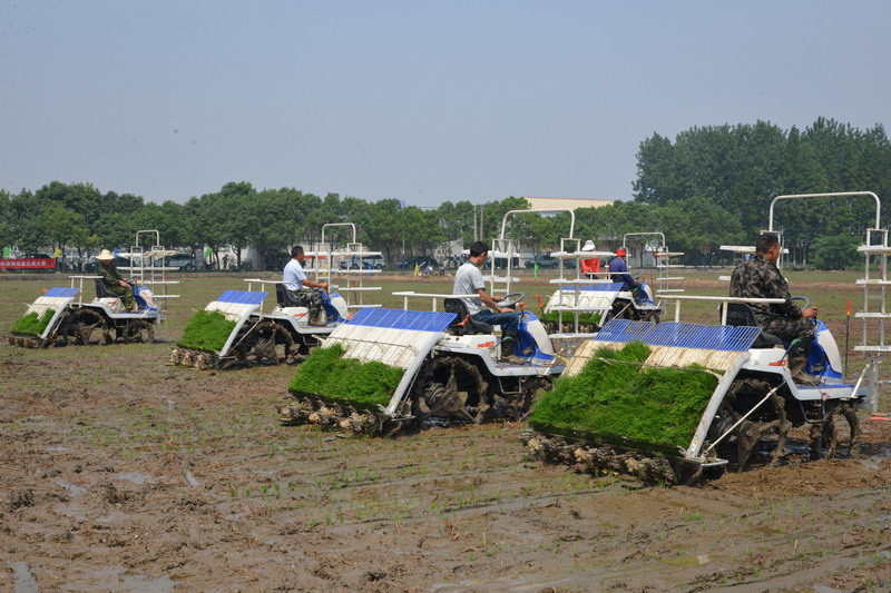 614,安徽農林水工會和安徽農墾集團工會聯合在大壙圩農場舉辦了水稻機插秧技能比武大賽,來自安徽農墾系統的10名機插秧能手參賽。(安徽日報201561502版,通訊員李炳旺 夏慶芳攝)