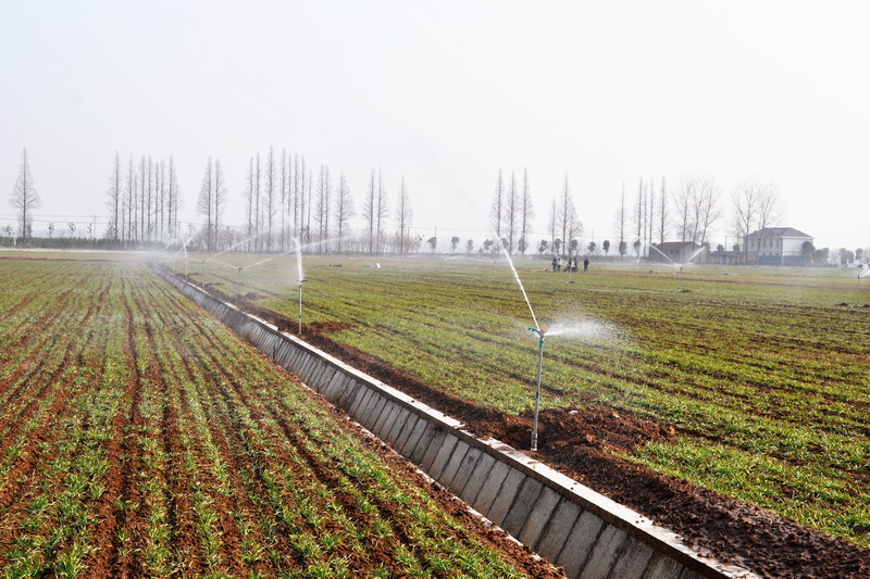 19,安徽農(nóng)墾潘村湖農(nóng)場小麥良種繁育田的自動噴灌系統(tǒng)正在進行澆水作業(yè)。針對近期持續(xù)少雨天氣,農(nóng)場按照小麥高產(chǎn)栽培技術(shù)規(guī)程要求,及時對出現(xiàn)旱情的田塊進行節(jié)水灌溉,確保3萬余畝在地小麥苗齊苗壯、安全越冬。(安徽日報201511002版,楊登宏攝)