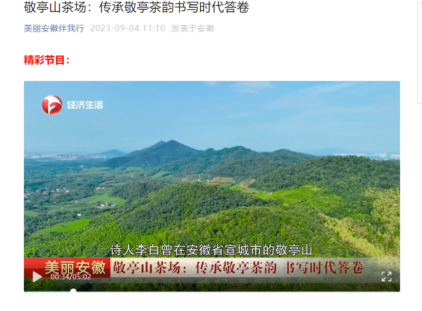 安徽經(jīng)濟(jì)生活頻道播出《敬亭山茶場:傳承敬亭茶韻書寫時(shí)代答卷》