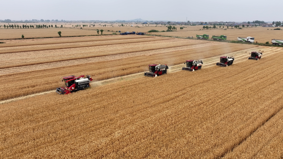 今年3月,安徽省提出加快建設(shè)“千億斤江淮糧倉”的發(fā)展目標(biāo),到2035年全省糧食產(chǎn)能穩(wěn)定在1000億斤以上。安徽農(nóng)墾集團(tuán)積極發(fā)揮“國家隊”示范帶動作用,與安徽省15個產(chǎn)糧大縣緊密合作,以土地流轉(zhuǎn)、托管等方式開展社會化服務(wù),讓農(nóng)墾、村集體、農(nóng)戶形成穩(wěn)定的利益聯(lián)結(jié),助力110萬畝糧食生產(chǎn),落實全國農(nóng)墾“兩大行動”。近日,筆者走進(jìn)三個產(chǎn)糧大縣的“三夏”生產(chǎn)一線,感受在安徽農(nóng)墾的帶動下,地方糧食生產(chǎn)煥發(fā)出的新面貌。