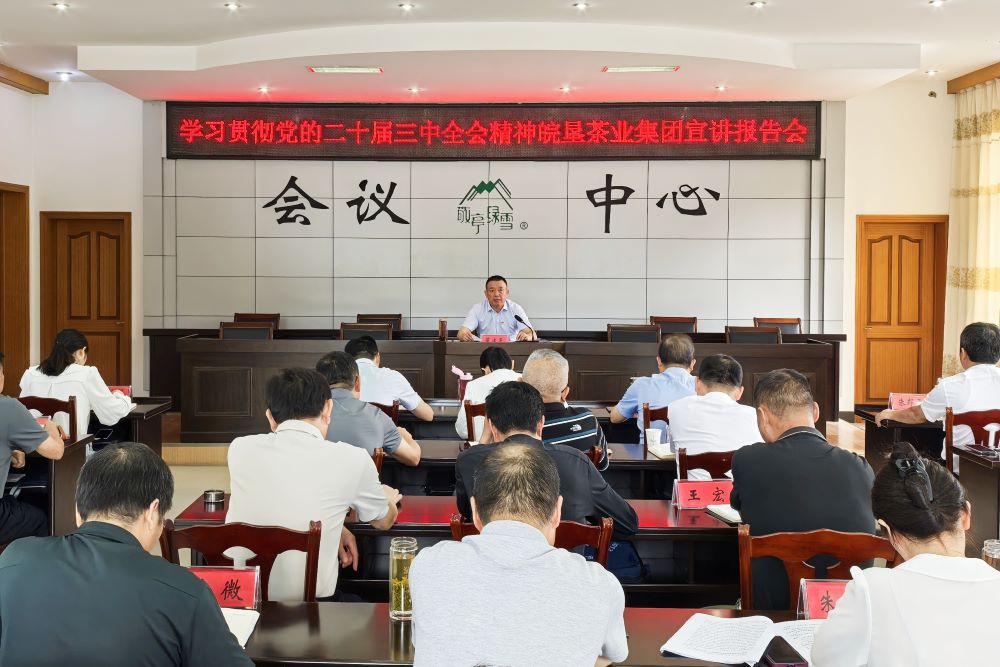 董建平從深刻領會和把握黨的二十屆三中全會的重大意義、深入學習領會習近平總書記在全會上的重要講話精神、全面準確把握《決定》確定的重大改革舉措、以釘釘子精神抓好全會精神貫徹落實等四個方面深入解讀了黨的二十屆三中全會精神,同時結合茶業集團改革發展實際,提出了具體的貫徹落實舉措和工作要求。