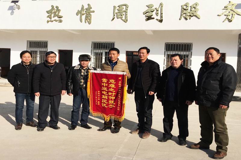 真不知道該怎么感謝你們才好啊!農場領導得知停電給我的養豬場造成困難,安排水電公司幫我很快解了燃眉之急,實在太感謝了!26,華陽河三場專業戶蔡旗將一面危難之時伸援手,雪中送電解民憂的錦旗送到農場水電服務公司,現場表達了誠摯的謝意。