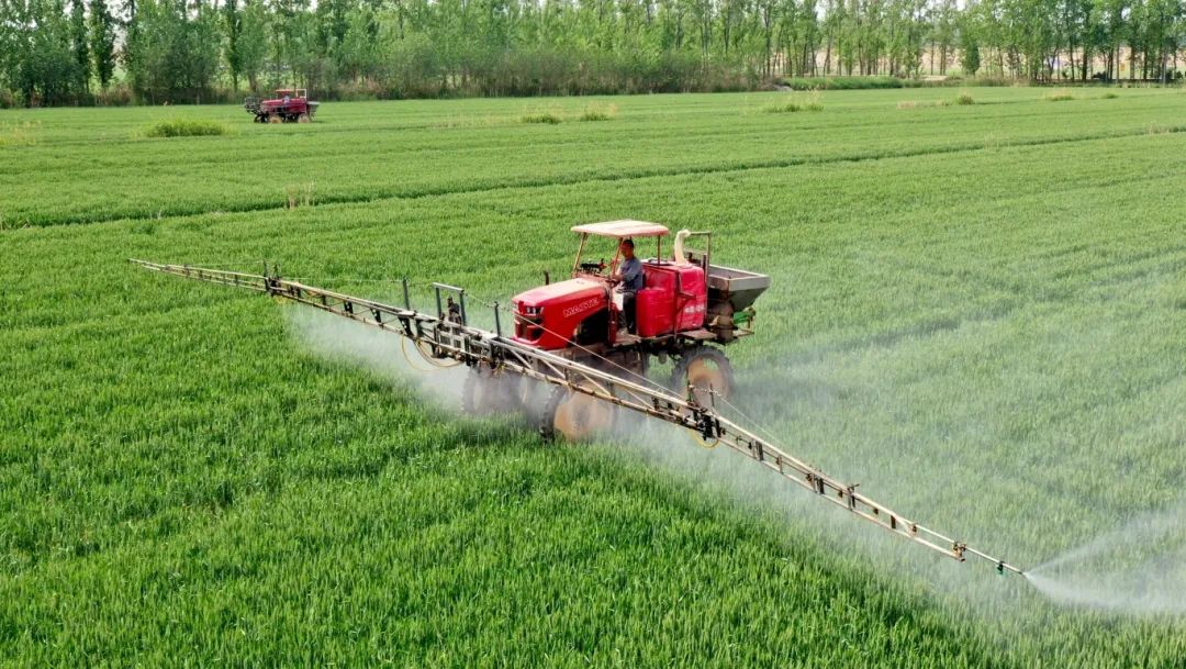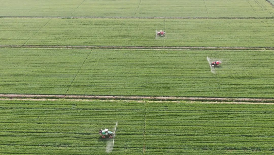 在無人機“主攻”的同時,自走式噴霧機、小孔徑噴頭設(shè)備等傳統(tǒng)植保機械同步發(fā)力。淮南農(nóng)場7臺自走式植保機“分田包干”,300畝麥田半小時完成作業(yè);東風湖農(nóng)場投入8輛自走式噴霧機,與3臺無人機形成“空地聯(lián)動”,4月20日前將完成9393畝小麥首防任務(wù)。針對復(fù)雜地形或連片大規(guī)模農(nóng)田,傳統(tǒng)機械憑借穩(wěn)定性和適應(yīng)性,與無人機形成優(yōu)勢互補,確保防治全覆蓋。壽西湖農(nóng)場推廣“一噴多效”技術(shù),在傳統(tǒng)器械作業(yè)中同步添加微肥,實現(xiàn)“防病治蟲、促壯抗逆”綜合增效。
