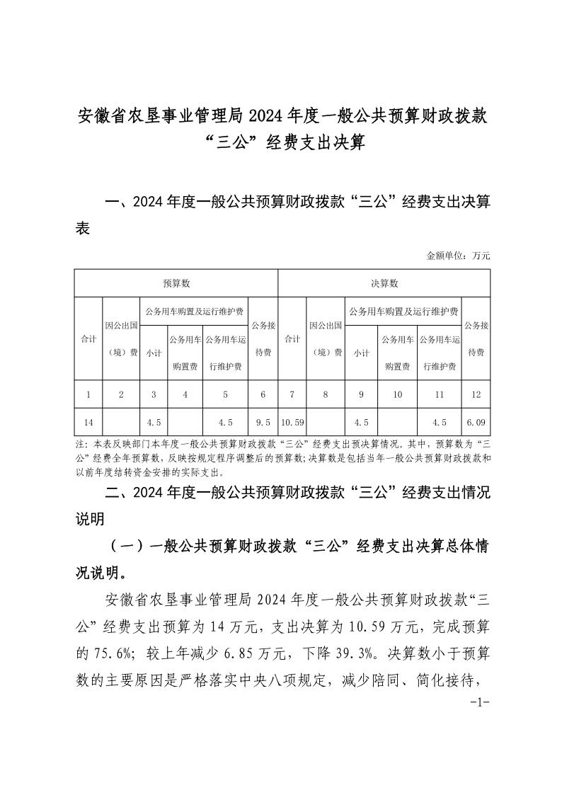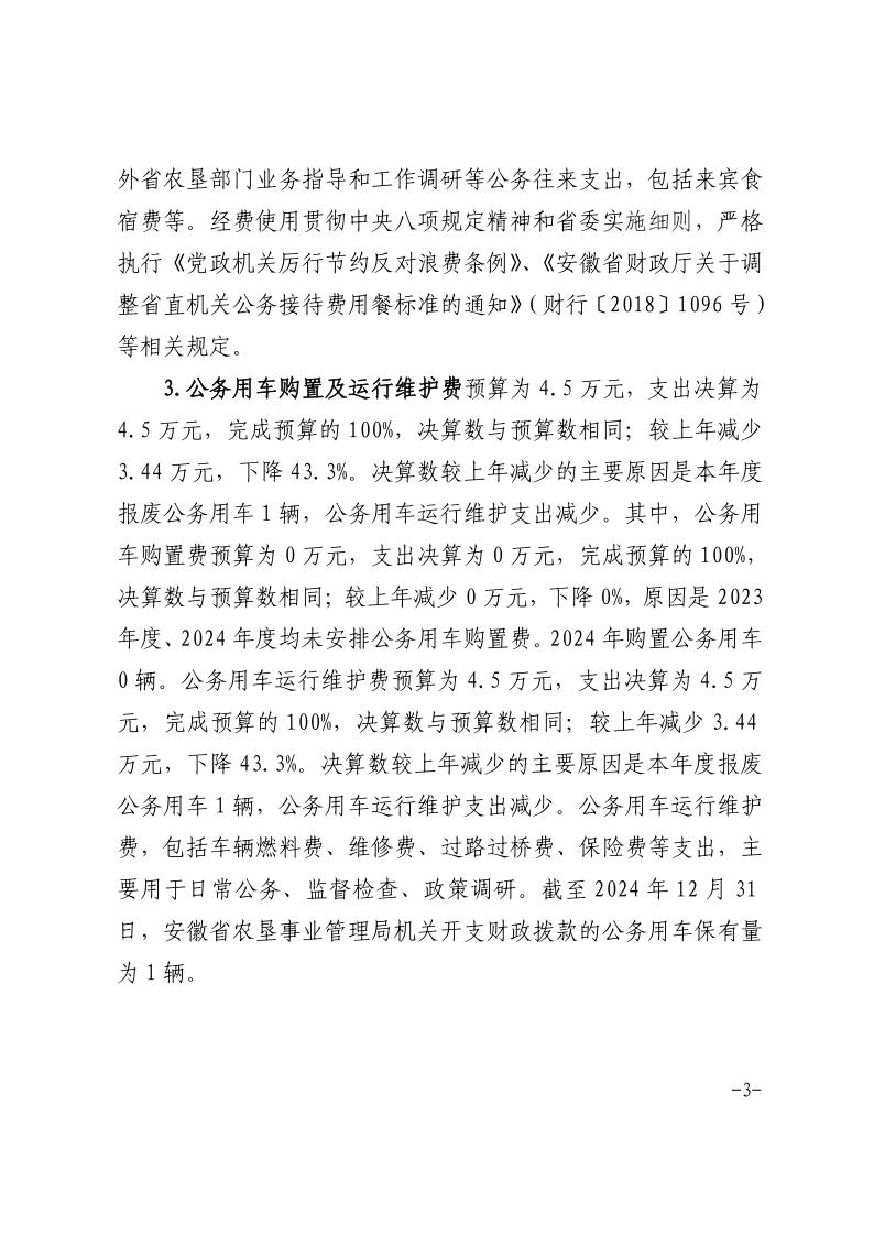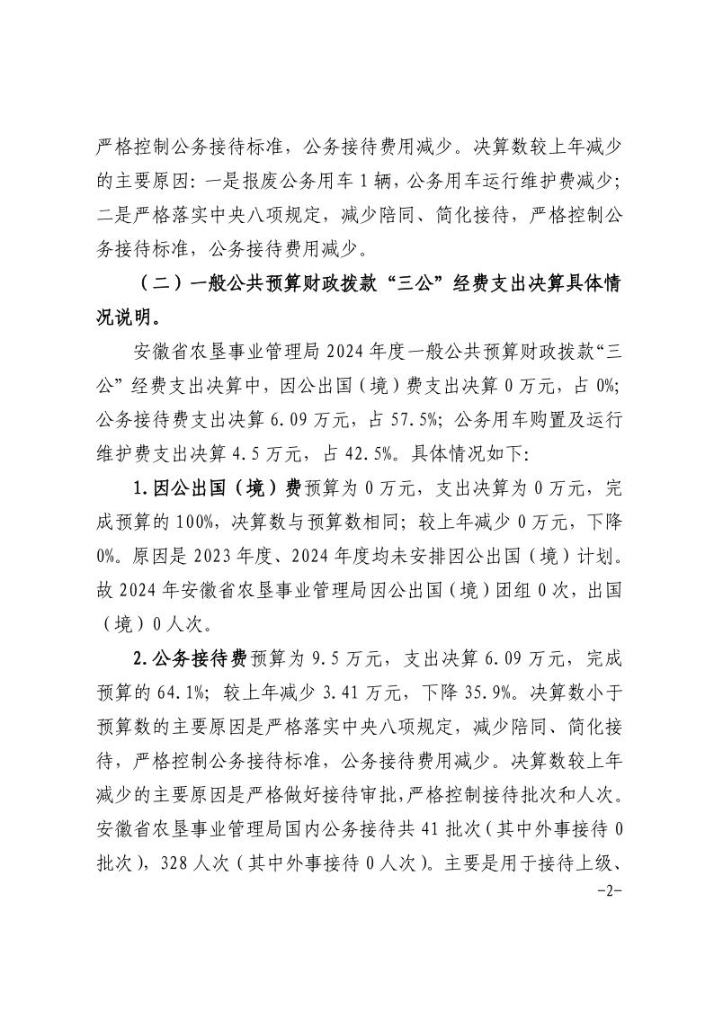 安徽省農(nóng)墾事業(yè)管理局2024年度一般公共預(yù)算財(cái)政撥款“三公”經(jīng)費(fèi)支出決算