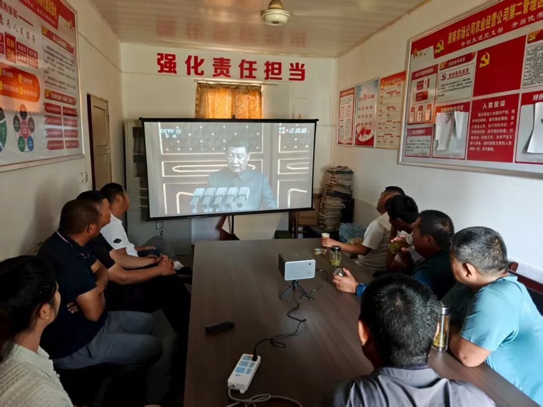 9月3日上午,紀念中國人民抗日戰爭暨世界反法西斯戰爭勝利80周年大會在北京天安門廣場隆重舉行。省農墾集團及基層企業通過各種形式組織廣大干部職工認真觀看紀念大會直播盛況。