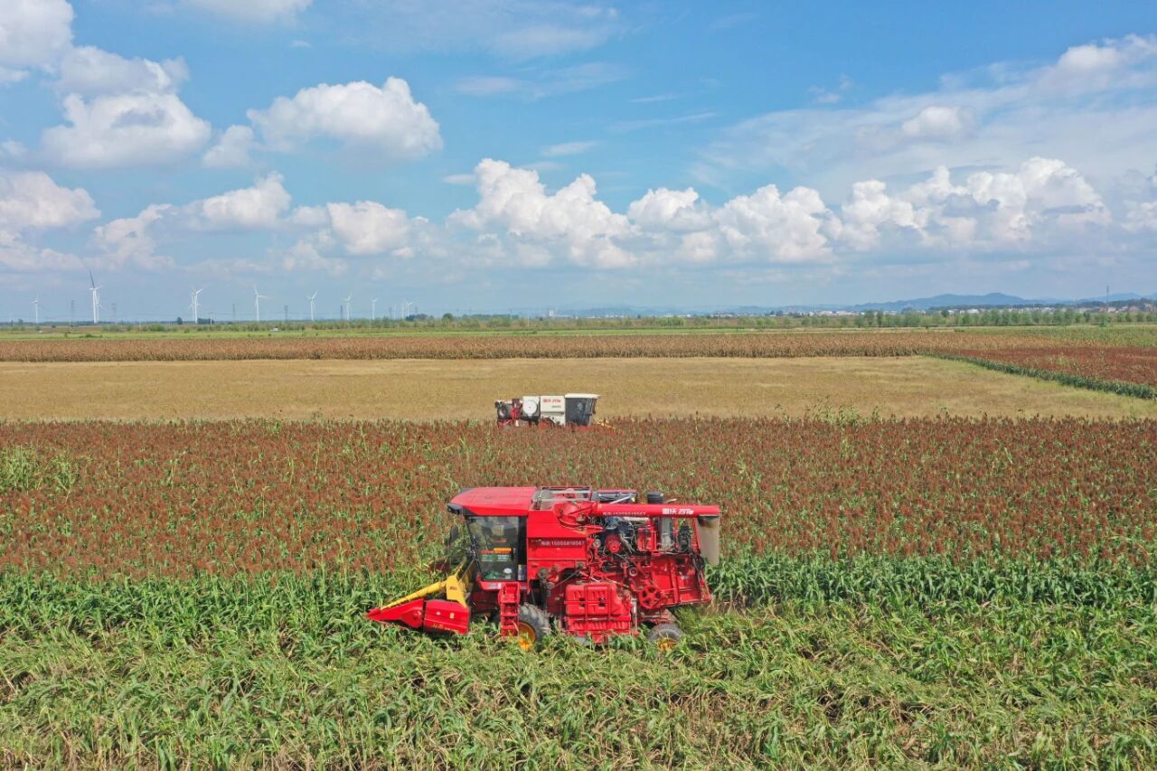 與此同時,在宿松縣復(fù)興鎮(zhèn)的連片農(nóng)田中,由華陽河農(nóng)場公司提供服務(wù)的4萬畝高粱也陸續(xù)成熟,進入集中收獲期。農(nóng)場公司正組織多臺收割機全力開展搶收作業(yè)。