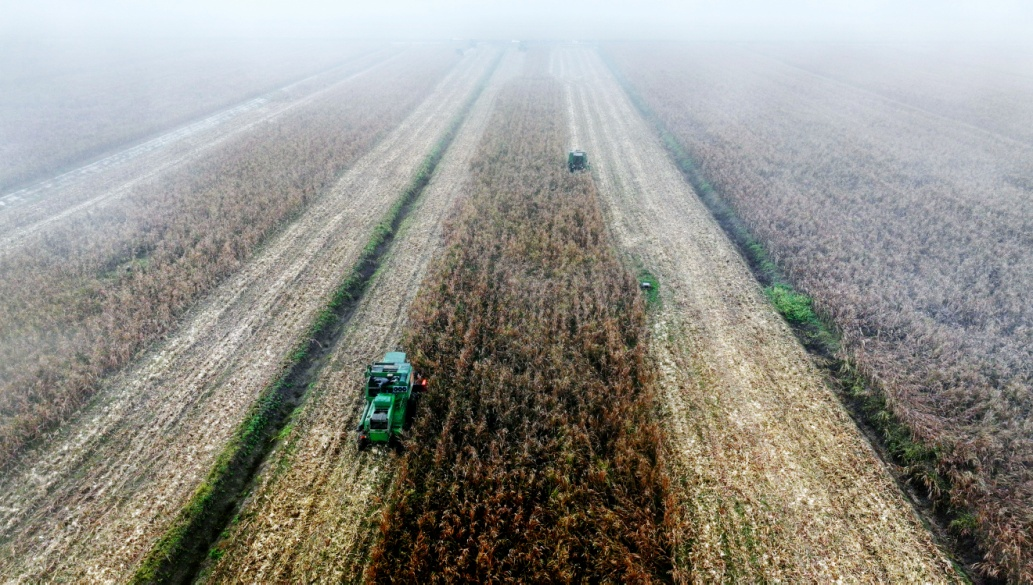 華陽河農場高粱收割作業。(李龍 攝)