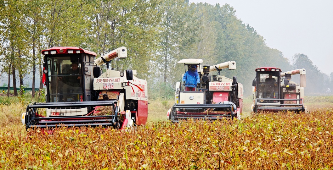 正陽關農場大豆收割作業。(胡寅之 攝)