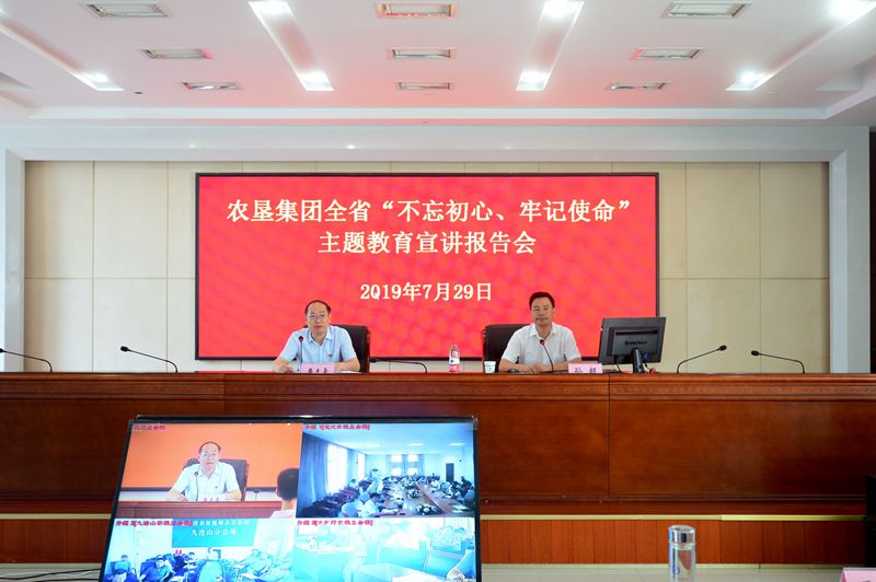 7月29日上午,全省“不忘初心、牢記使命”主題教育暨“舉旗幟•送理論”宣講走進墾區(qū)。安徽農業(yè)大學人文社科學院黨委書記、教授孫超作題為《牢記黨的根本宗旨 堅定共產主義理想信念》專題報告。宣講報告會由集團公司黨委書記、董事長詹先豪主持,集團總部全體工作人員現場聽課,二級公司中層以上管理人員同步視頻觀看。