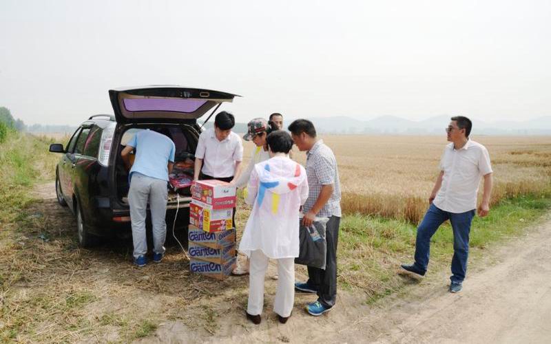 61東風湖農場領導馬振輝率班子成員及工會人員,炎夏送清涼麥收田頭,慰問正在高溫下農忙的職工,帶去場黨委及工會的關懷,送上礦泉水、毛巾、藥品等防暑降溫品。