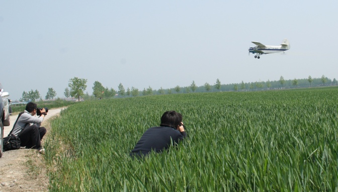 從4月22日開始,龍亢農場從江蘇徐州農用航空站租來農用飛機,對全場3萬畝小麥實施以防病、防蟲、防干熱風為目的“一噴三防”作業。此次“飛防”分兩個階段低空作業10天,需飛行200多個架次。