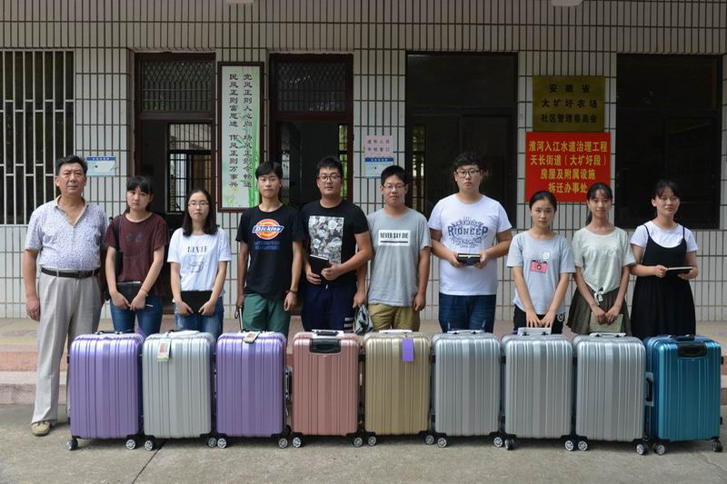 新學期開學在即。822,大壙圩農場社區開展了大學新生關愛活動,贈予今年考上大學的農場學子每人一只行李箱及筆記本、筆等學習生活用品,讓他們感受到場黨委的關愛與溫暖。
