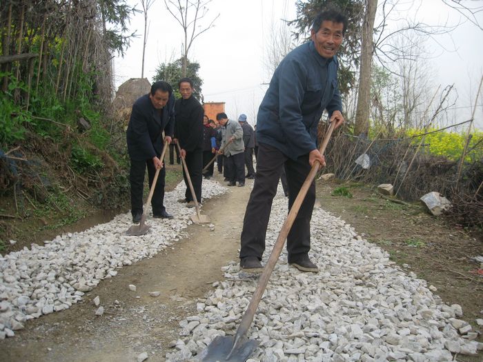 退休農工、74歲的老黨員陳業海年輕時就是個積極分子,今年春節他又有了一個計劃,發動退休農工“做點善事”。經過悄悄地串聯,做工作,隊里的老人二話不說,紛紛響應,每人至少出一百,短短一個禮拜,就湊足了7000多元。大家民主推選幾個老人組成了一個理財小組,張榜公布捐款名單,同時委托隊長陳多銀負責項目施工,對開支情況實行帳務公開。身體硬朗的幾位老人還親自投勞,義務參加施工,當起了“義工”。