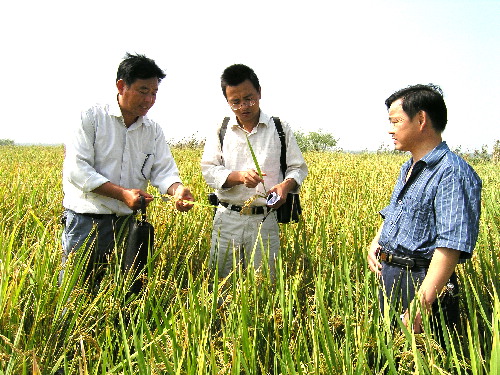 省農(nóng)科院科技人員在潘村湖農(nóng)場指導(dǎo)旱稻生產(chǎn)