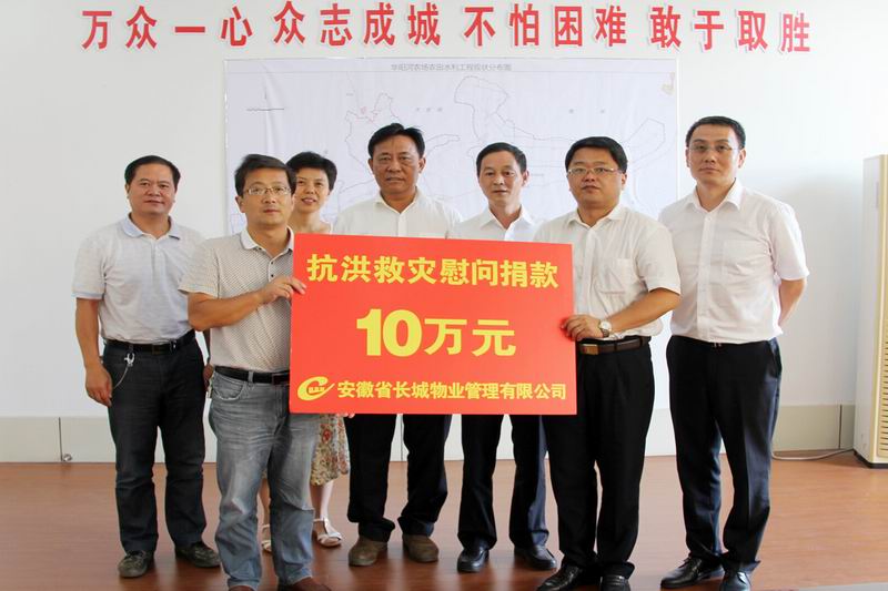 黨委書記王洪代表華陽河農場衷心感謝長城物業公司的傾心相助,表示農場干群將全力以赴抗洪救災,保障好受災職工群眾生活,不負兄弟單位的期待。(程來保)