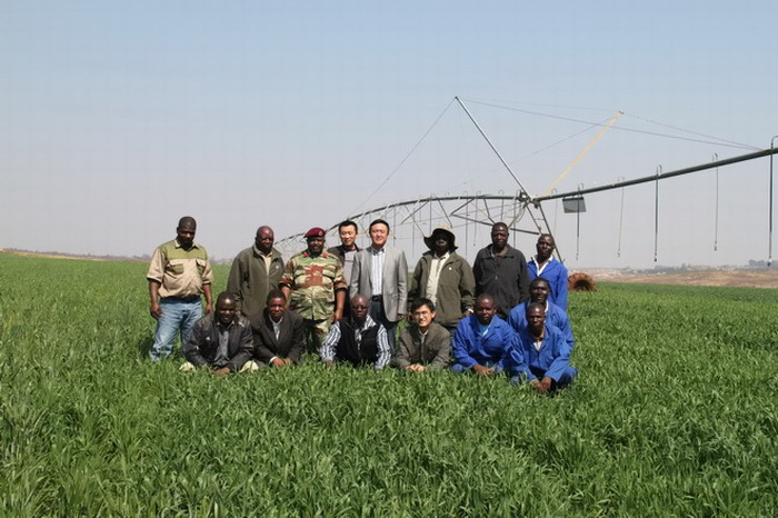7月27日,津巴布韋農(nóng)業(yè)部秘書長(zhǎng)Masoka一行4人訪問(wèn)考察了皖津公司溫亞尼和SISI農(nóng)場(chǎng),安徽農(nóng)墾皖津農(nóng)業(yè)發(fā)展公司董事長(zhǎng)韓大鳴、副董事長(zhǎng)D·伊柯阮姆巴將軍、副總經(jīng)理F·拓扎伊上校給予了熱情接待。Masoka對(duì)皖津農(nóng)場(chǎng)當(dāng)前小麥長(zhǎng)勢(shì)表示贊許,認(rèn)為,皖津公司經(jīng)營(yíng)團(tuán)隊(duì)管理工作扎實(shí)高效,經(jīng)營(yíng)計(jì)劃腳踏實(shí)地,背靠中國(guó)巨大的供應(yīng)市場(chǎng),面向津國(guó)廣闊的消費(fèi)市場(chǎng),開(kāi)展多種經(jīng)營(yíng)的優(yōu)勢(shì)明顯。Masoka表示,津國(guó)政府相關(guān)部門將積極配合并幫助皖津公司完備相關(guān)法律手續(xù),他還就未來(lái)小麥銷售提出了合理化建議。