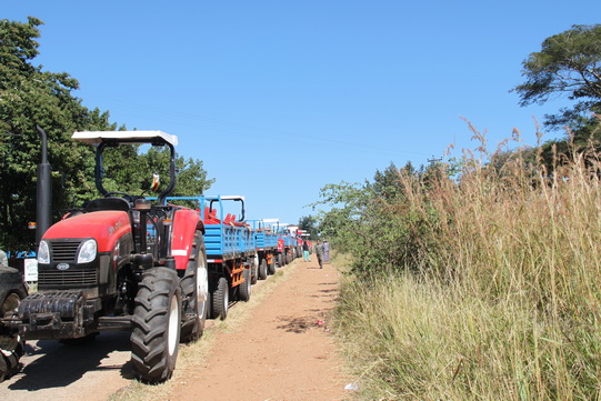 56,安徽農墾皖津公司第一批農機設備啟程奔赴皖津SISI農場,早晨858分,車隊開始啟運,一輛輛滿載生產設備的拖拉機鱗次櫛比,浩浩蕩蕩的運行在溫西公路(溫亞尼~SISI農場)之上,引來了無數津國路人的駐足觀看,也引來了來往車輛的鳴笛致意。