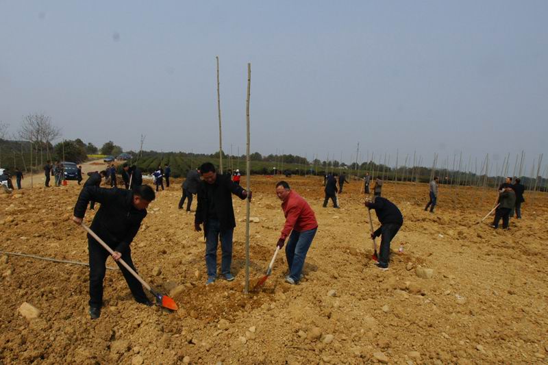 314,皖墾茶業集團黨工委書記張國祥率本部及3個專業公司的30多名員工,自備工具,前往九連山茶場與基層干群一道參加義務植樹,不到半天就完成了復墾土地1000株法梧的綠化任務。領導干部的率先垂范,推動了所屬各茶場春季義務植樹活動、綠化家園提升行動的蓬勃開展。