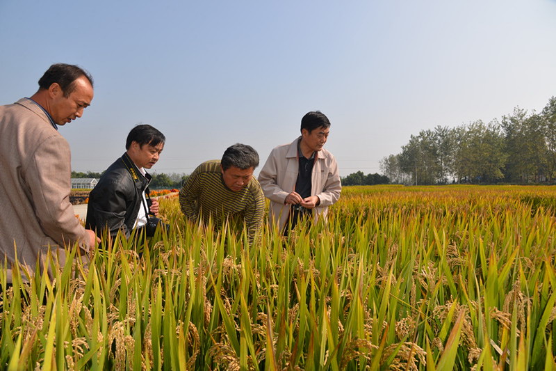 大壙圩農場水稻品種時下正值收獲期,是深入了解新品種田間表現和特征特性的最佳時期。1022日,滁州市農委總農藝師李廣厚、育種專家黃自安一行考察了農場農科所水稻新品種。