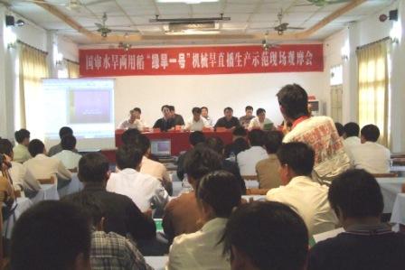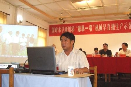 經安徽省農科院綠色食品研究所和安徽省首席水稻育種專家朱啟升研究員授權,安徽農墾龍亢種業有限公司獨占“綠旱一號”全國生產經營權。作為生產單位,公司負責人在會上匯報了“綠旱一號”的市場營銷方案。