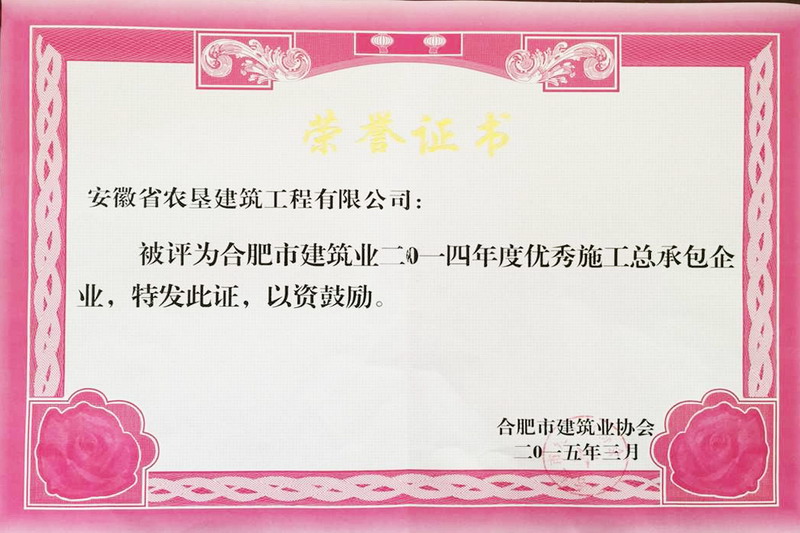 近日,安徽墾建公司獲評(píng)合肥市建筑業(yè)上年度優(yōu)秀施工總承包企業(yè)。2014年,墾建人直面紛繁復(fù)雜的市場(chǎng)環(huán)境,搶抓機(jī)遇,上下一心,以抓經(jīng)營(yíng)促發(fā)展、抓質(zhì)量促信譽(yù)、抓安全促效益,不斷總結(jié)經(jīng)驗(yàn),各項(xiàng)工作都取得了好成績(jī)。
