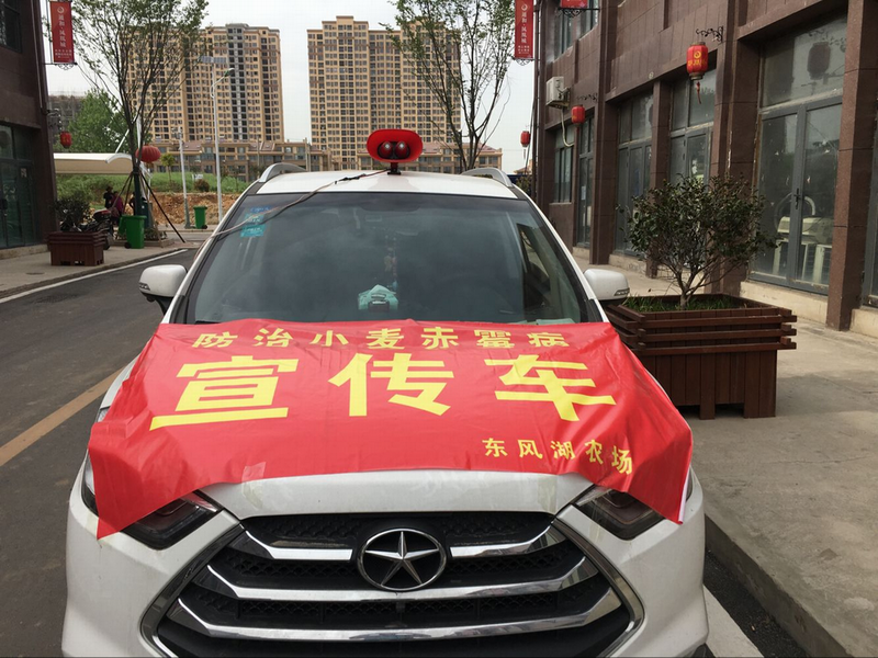 為確保一噴三防工作落到實處,嚴防小麥赤霉病發生,連日來,東風湖農場改變往年以會議部署為主的方法,在場屬各農業單位醒目之地懸掛赤霉病防治宣傳條幅,啟用流動宣傳車開往田間地頭、職工居住點進行重點宣傳,農技人員上門入戶耐心講解技術要點,讓一噴三防家喻戶曉、人盡皆知。
