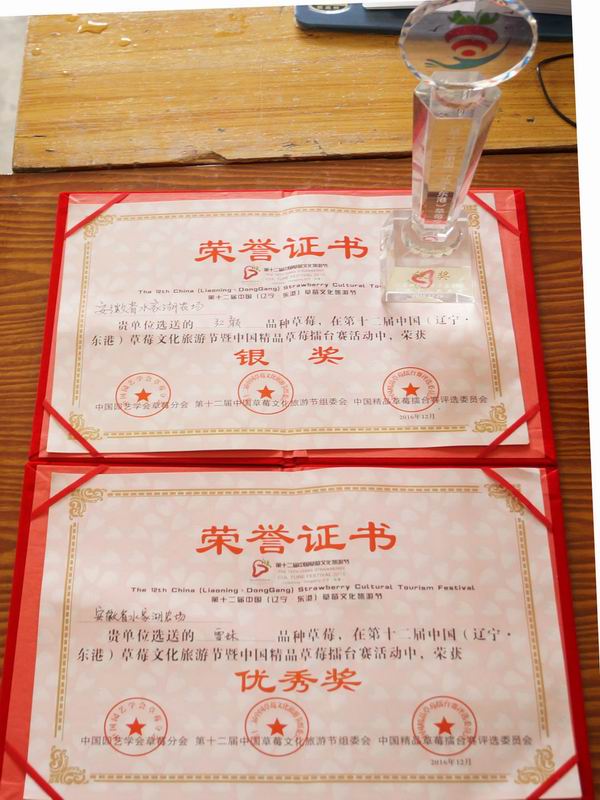 近日,第十二屆中國草莓文化節在遼寧東港舉行。水家湖農場選送紅顏雪妹”2個草莓品牌參加全國精品草莓擂臺賽,分別摘得銀獎和優秀獎。(孫彩維)