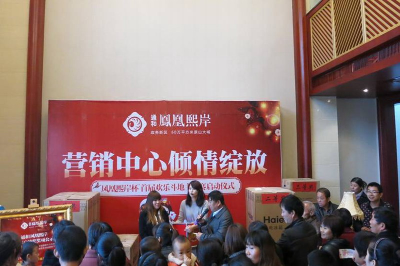 119通和房地產集團鳳陽鳳凰熙岸營銷中心正式開放,新老客戶和來自周邊鄉鎮的110余人參加了開放活動。鳳陽和潤公司負責人啟動了鳳凰熙岸杯首屆游藝賽和老客戶抽獎活動,現場觀眾踴躍報名參賽,氣氛熱烈,高潮迭起。