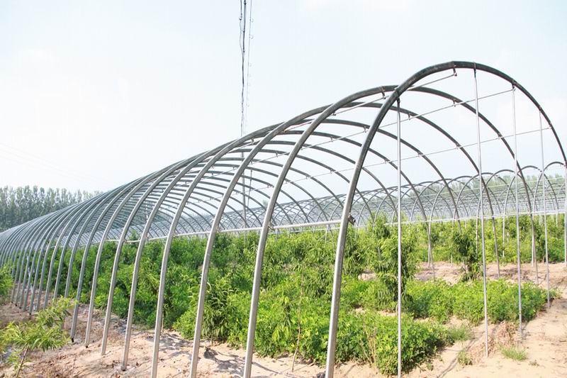 近期,碭山果園場90座新建高效設施大棚果園發展提速。該場年初規劃建設180畝、90座單體設施果園,現已完成了園內布局、苗木定植等基礎工作,棚架搭建即將完工,園區道路、水利等配套設施正在加緊施工,目前園內樹苗長勢良好,有望于明年初實現罩棚。