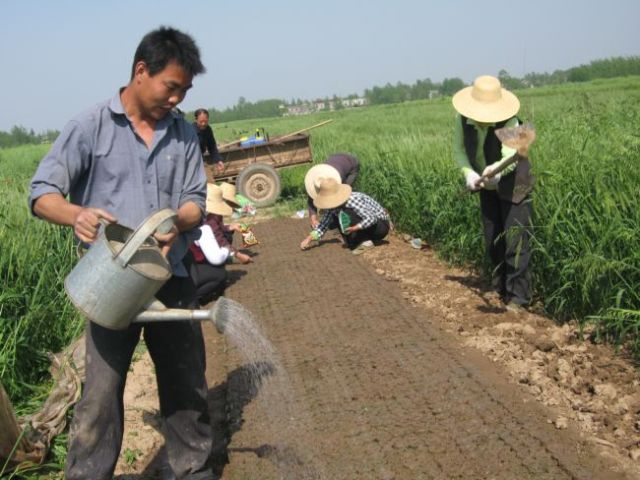 425下午,安徽省皖河農(nóng)場雙河分場種棉大戶王長節(jié)正在缽床澆水,他聘請的“鐘點工”忙著搶播棉種。至此,全場2萬畝棉花播種接近尾聲。根據(jù)節(jié)令,四月上旬就有棉農(nóng)為棉籽下種準備營養(yǎng)土,中旬和下旬進入打缽搶種的高峰期。針對大批勞動力外出務(wù)工的情況,不少種棉大戶購置了育苗壓缽機,通過機械化方式打缽下種。今年是該場棉農(nóng)享受棉種補貼的第二年,每畝發(fā)放價值15元的優(yōu)質(zhì)棉種,加上棉農(nóng)自行選購,良種覆蓋率達100%。