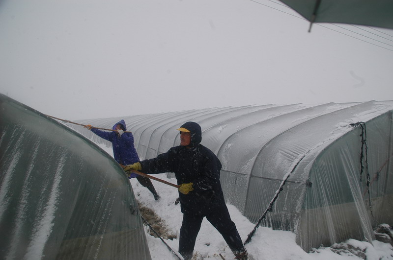 暴雪不僅給居民生活帶來不便,也造成目前正在緊鑼密鼓施工的廉租房建設暫時停工休整,更讓全場1200余畝大棚草莓種植戶經受了嚴峻的考驗,他們不畏暴雪嚴寒,日夜奮戰在生產一線,去除大棚積雪,防止大棚壓塌和草莓凍害發生。